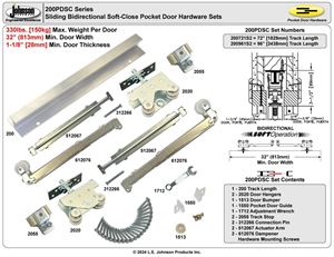200PDSC 1-Door Bidirectional Soft Close Hardware Set, 96" Track