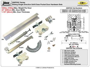 200PDSC 1-Door Single Direction Soft Close Hardware Set, 48" Track